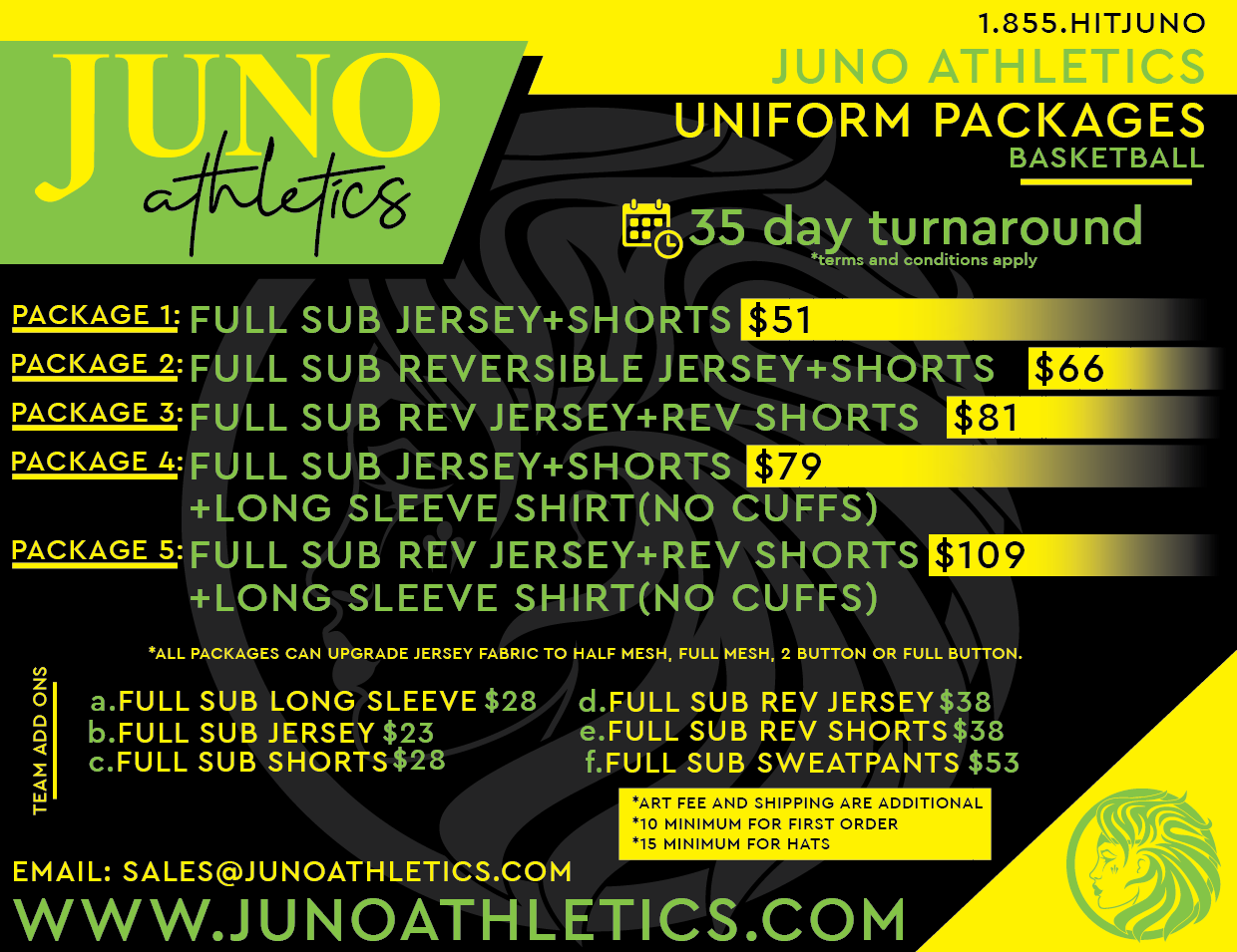 We also offer a full range of basketball apparel, including shorts, warmups, and backpacks, so your team is ready for action from tip off to the final buzzer. Choose Juno Athletics for high performance gear that helps your team stay sharp, focused, and on top of their game.